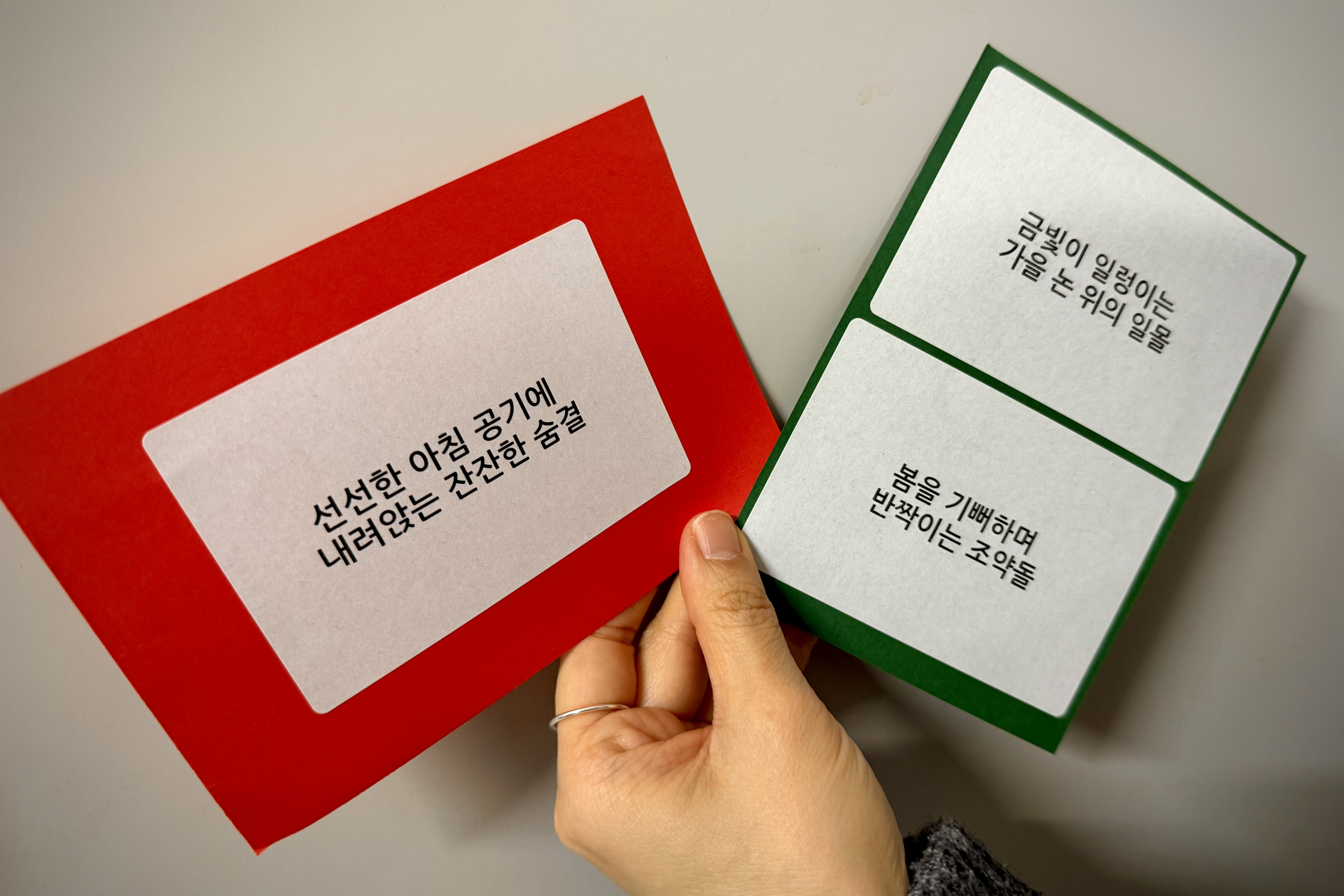 올해를 마무리하는 12월의 어느 날 저녁, 작은말하기 송년회가 열렸습니다. 공연과 선물, 그리고 짧은 편지글로 2025년을 무사히 보낸 것을 응원하고 격려하는 시간을 가졌습니다. 올 한해 열 번의 모임 동안, 우리는 함께 서로의 안전을 살피고, 담아두었던 이야기를 꺼내었고, 내가 듣고 싶던 이야기를 다른 이에게 해주며 위로를 전하기도 했습니다.