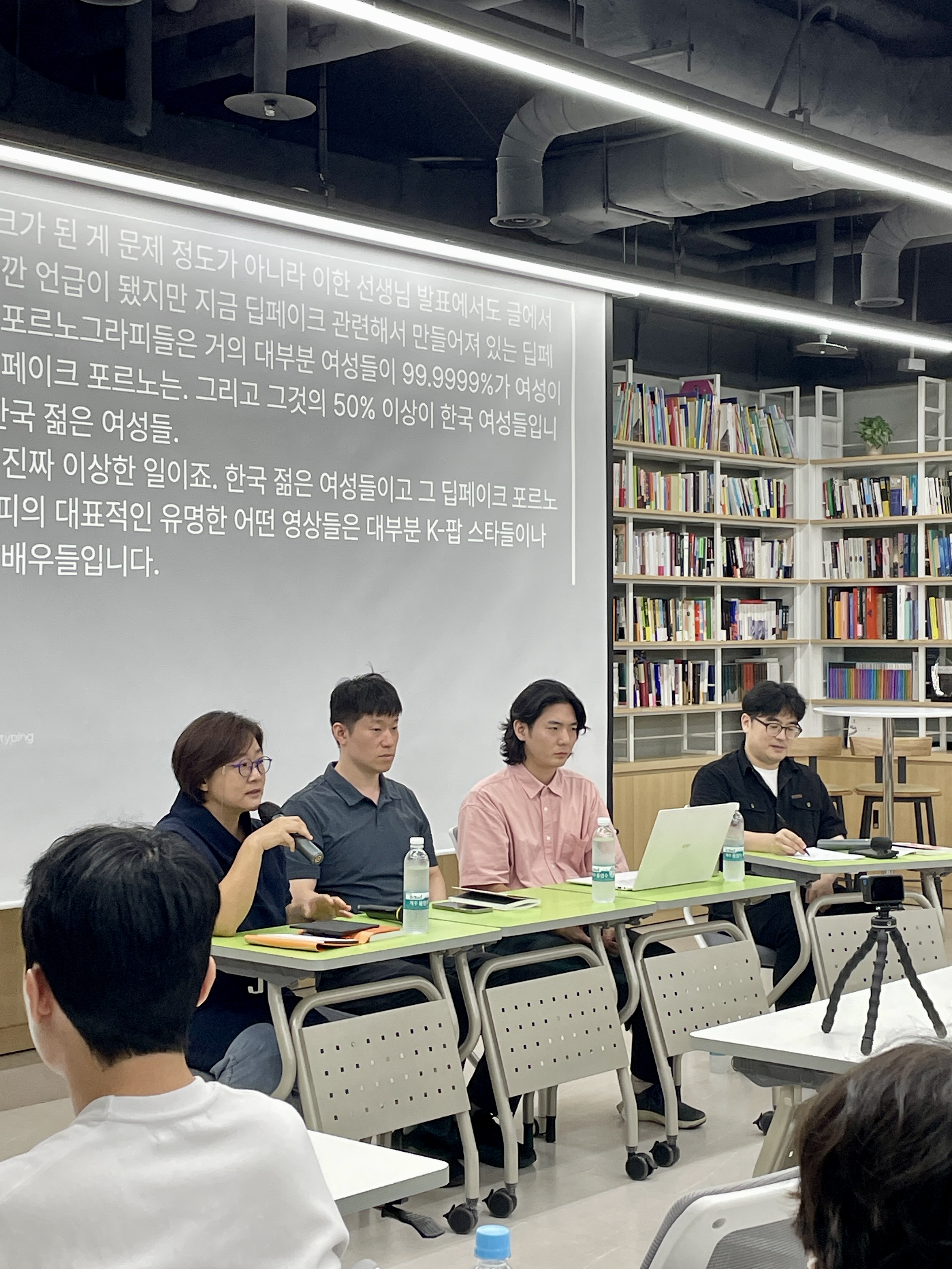 (1차 북토크에 이어서 정치적으로 극우화된 현재상황을 논평하고, 그러한 동력의 중심에 안티페미니즘이 놓여있다고 짚어주셨습니다. 한편으로 딥페이크 사태 관련하여 현시점에서 질문해보아야 할 이성애 남성 섹슈얼리티의 규범에 대해서도 질문을 던져주셨습니다.)