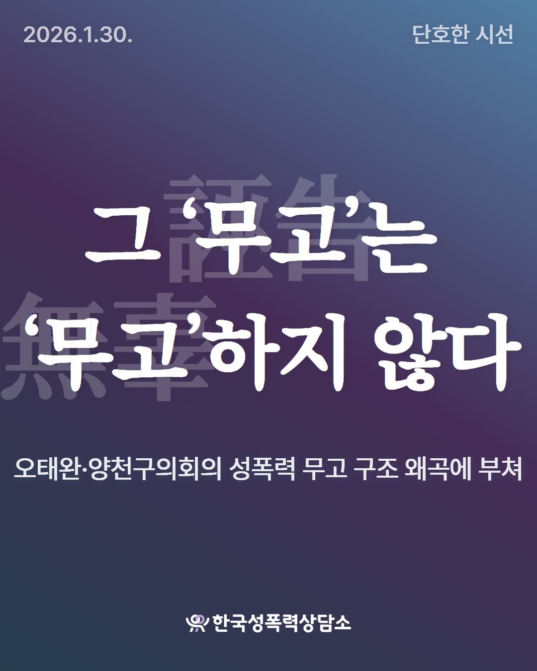 [단호한시선] 그 ‘무고(誣告)’는 ‘무고(無辜)’하지 않다-오태완·양천구의회의 성폭력 무고 구조 왜곡에 부쳐