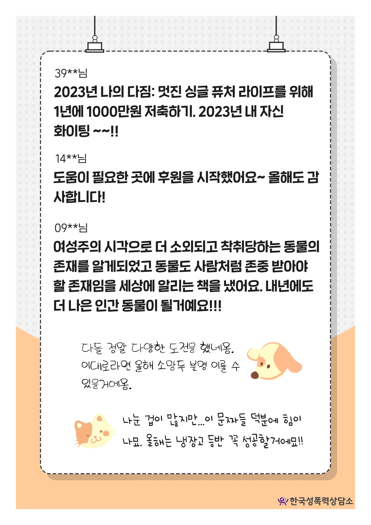 여러분의 응원과 지지 덕에 상담소도 힘껏! 달릴 수 있었어요. 2023년에도 상담소의 활동을 지켜봐주시고 힘을 보태주세요. 많은 동료시민들의 응원이 저희의 동력이 됩니다!