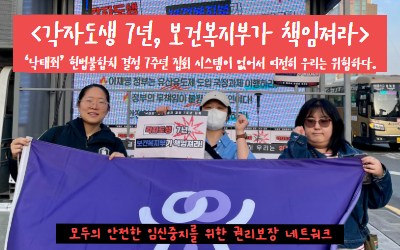 ‘낙태죄’ 헌법불합치 결정 7주년 집회 시스템이 없어서 여전히 우리는 위험하다. < 각자도생 7년, 보건복지부가 책임져라> 4월 11일은, 2019년 4월 11일 헌법재판...- 2026-04-13