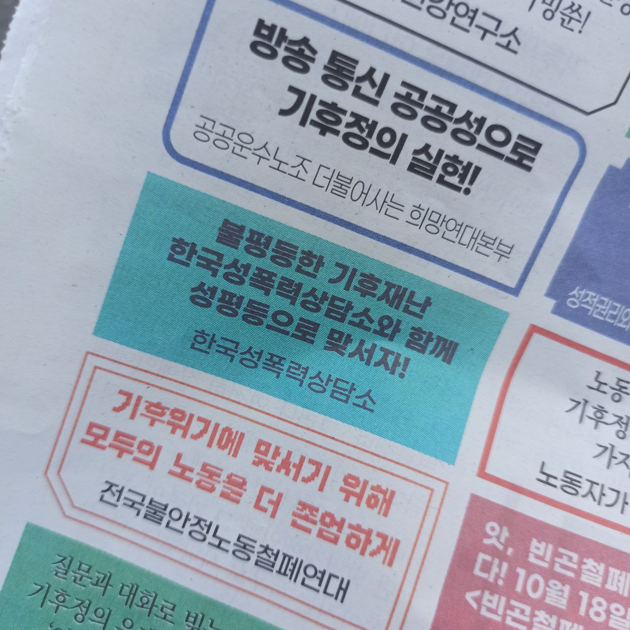 이 목소리를 시작으로 올해 2025년에도 60개의 단체, 301명의 개인이 927기후정의행진 페미니즘 선언을 했습니다. 한국성폭력상담소도 함께 했습니다.