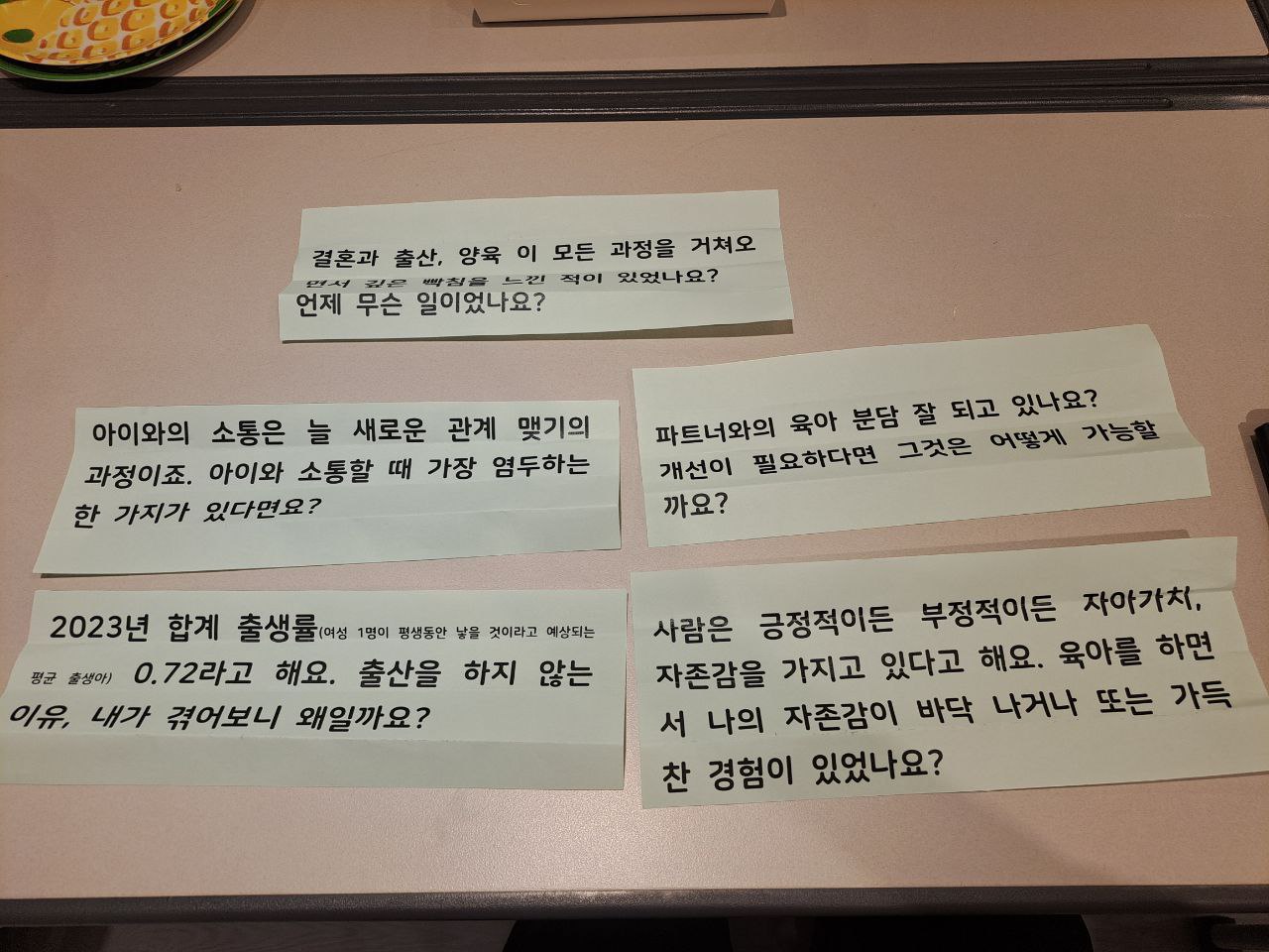 [육아와 페미니스트, 사전에 준비한 질문지에 대한 서로의 생각을 나누었다]