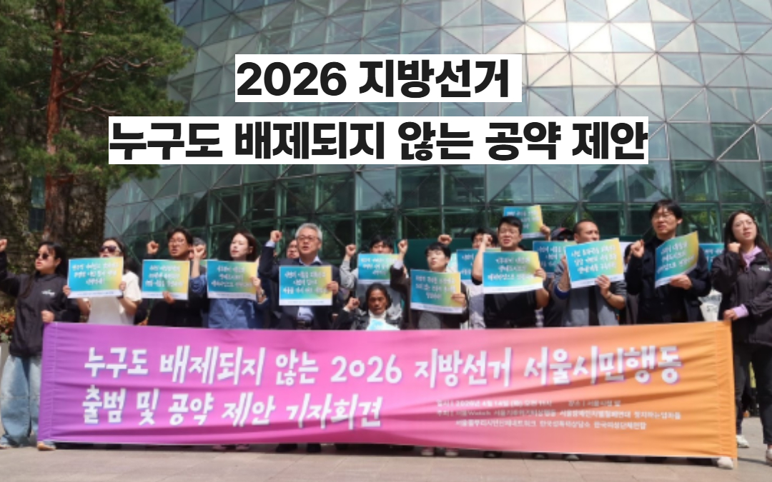 누구도 배제되지 않는 서울시정을 위한 시민사회 공약 제안 2026년 지방선거 대응을 위한 서울시민행동 발족 < 누구도 배제되지 않는 2026 지방선거 서울시민행동 출범 및 ...- 2026-04-15