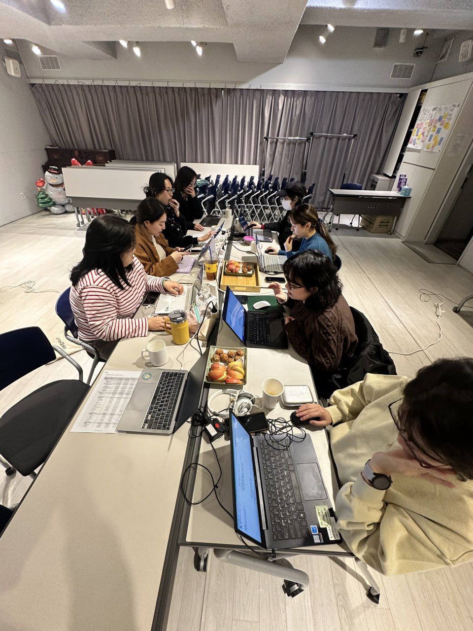 그리고 1217일에 열린 3차 모임, 15일에 열린 4차 모임에서 드디어(!!) 영상 제작을 배울 수 있었다. 이 날은 과제 없이 자신이 소개하고 싶은 것의 사진과 영상 소스들을 모아오기만 하면 됐다. 그런데 우리 총명한 활동가들이 모두 영상툴에 한정해서는 아는 게 없어서 좌충우돌 왁자지껄 우당탕탕 하며 훌륭한 선생님인 봄눈별 활동가를 통해 어찌저찌 배웠다. 1분의 영상을 만드는 데는 한 시간 반이나 걸렸다(). 지면(?)의 한계로 영상을 실을 수는 없지만 당시의 열띤 분위기를 느낄 수 있는 사진을 첨부해 보겠다.