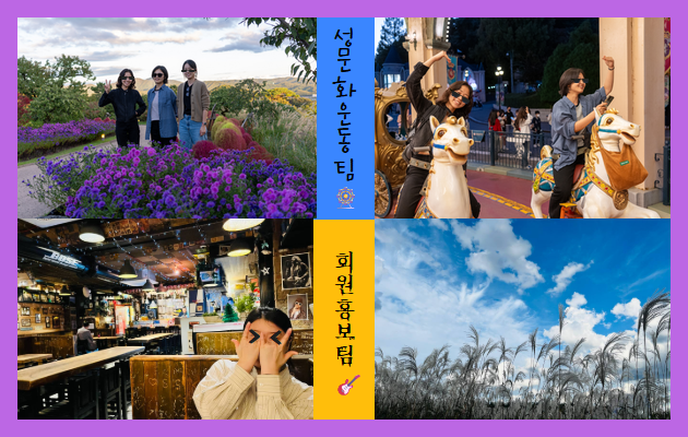 반면, 회원홍보팀의 S활동가, G활동가는 30분만에 MT 계획을 짰습니다. 하늘공원에서 느긋하게 산책하며 억새의 운치를 즐기고, 버스킹도 보고... 날씨는 어찌나 좋은지요! 쾌청한 하늘에 차분한 억새의 색채가 너무도 잘 어우러졌어요. 저녁에는 신촌의 오래된 LP바에 갔습니다. 내가 신청한 노래의 전주가 나올 때 그 두근거림이란...! 8시 이후에는 바의 분위기가 고조되었는데요. 사진을 본 성문화운동팀 N활동가는 회원홍보팀 두 활동가에게 "왜 남의 회식자리에 갔냐"고 물었답니다🤣 |