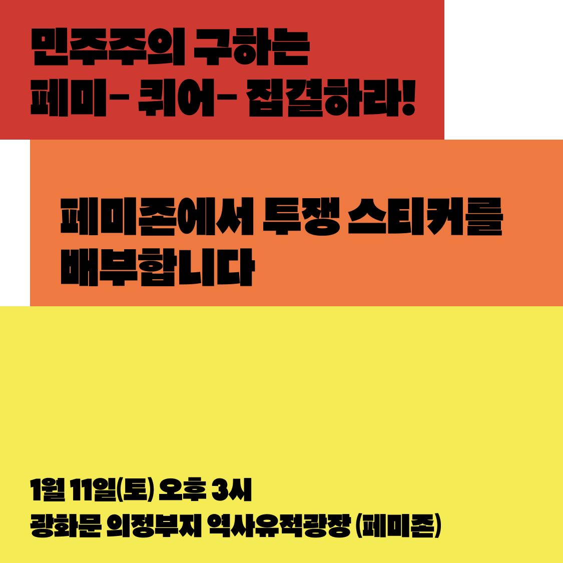 1월 11일(토) 오후3시 광화문 집회 페미존 투쟁스티커 배부 안내