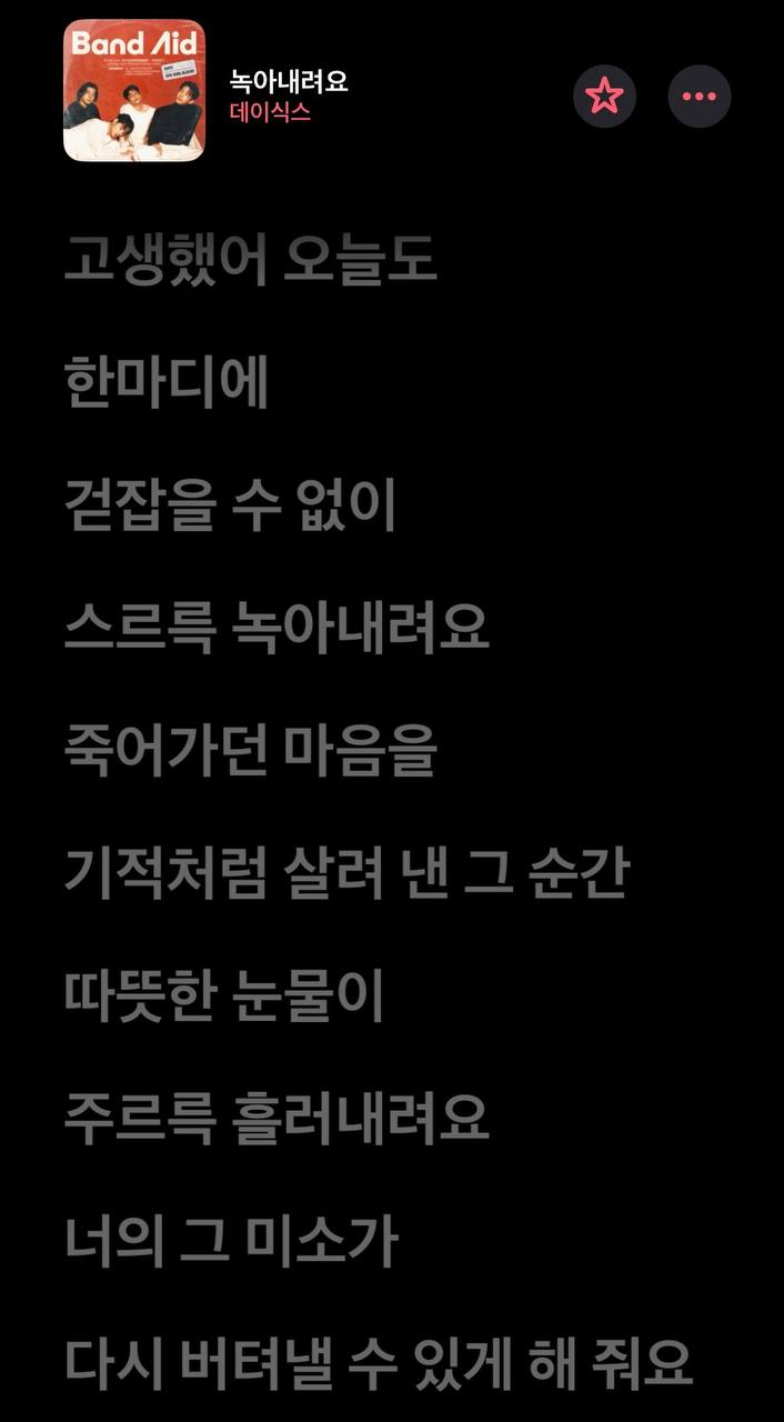 | 뉴스레터 작성자(봄눈별)가 빠져있는 노래🎵 데이식스_녹아내려요 |
