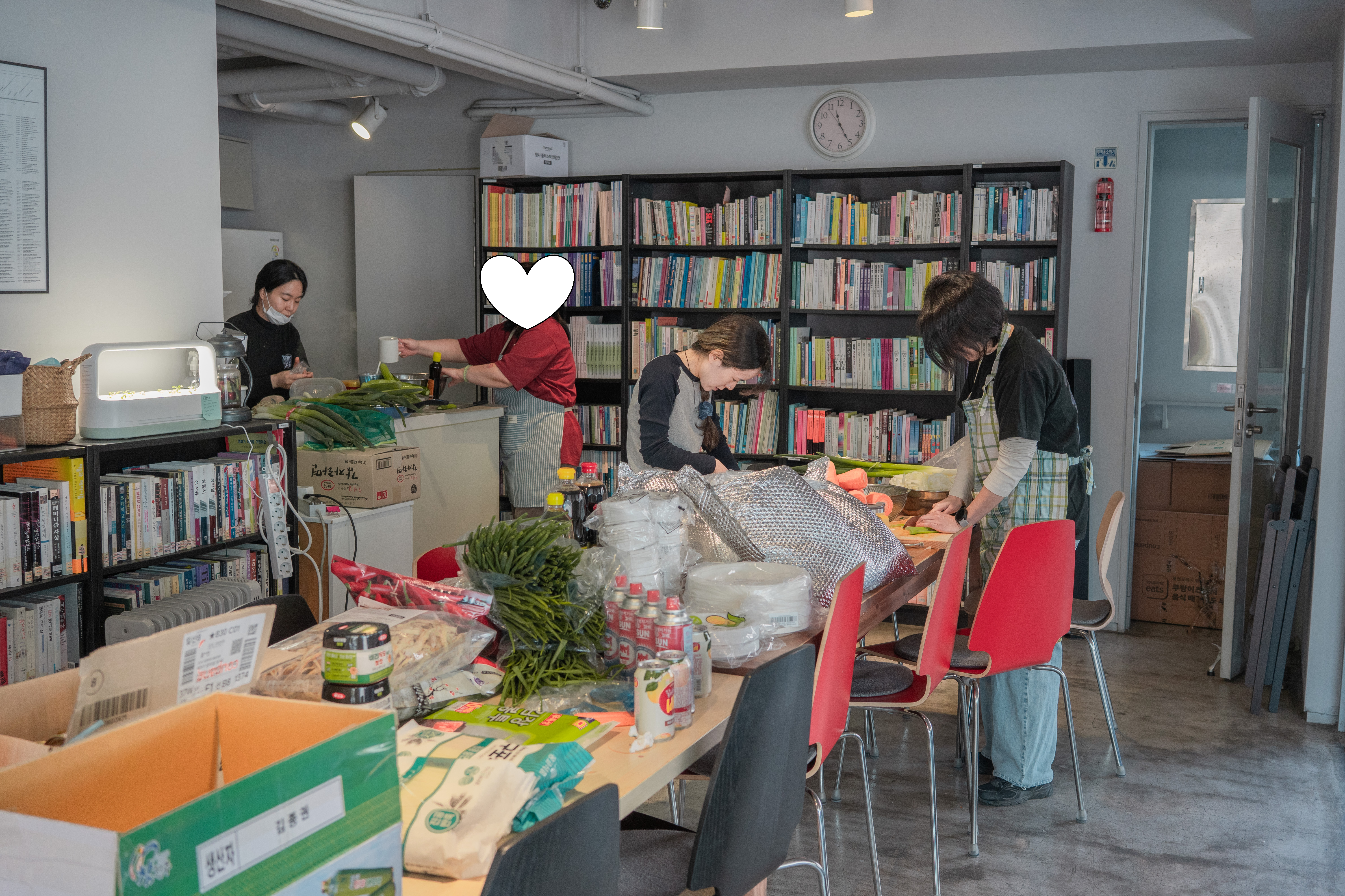 이곳에서 밥 지어 먹기에 동참하는 활동가들은 매달 일정 금액을 모으고, 그 모은 예산을 이 주의 당번이 소중하게 사용해서 장을 봐 온다. 그 귀중한 재료로 지난주 동안 고심한 메뉴를 오전 내내 만들고, 점심시간이 되면 함께 고마워하는 마음으로 맛있게 먹는다. 비건을 실천하는 활동가가 참여할 때면 더욱 신경 써서 재료를 구한다. 누구도 배제되지 않는 식탁을 만들기 위해 노력한다.