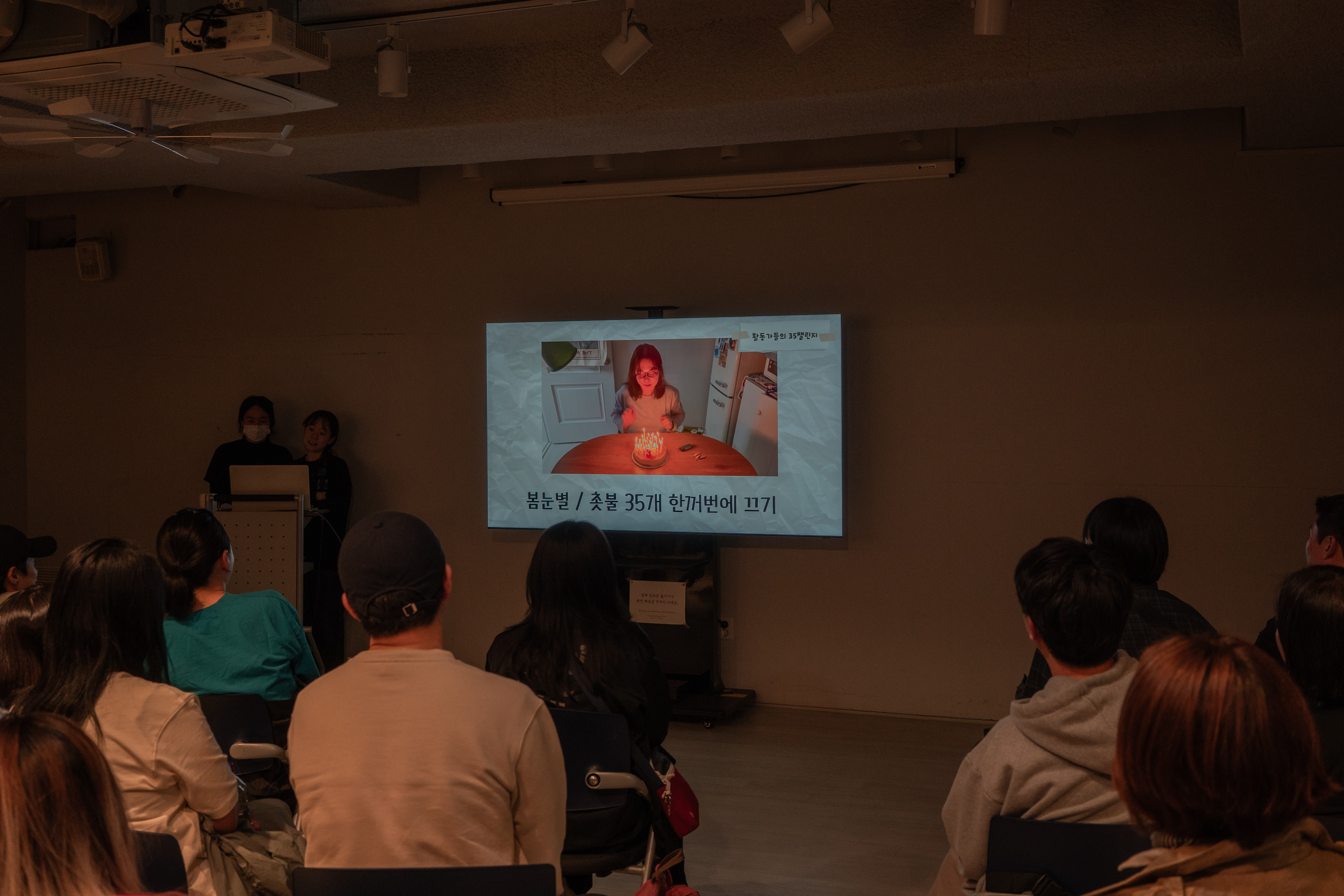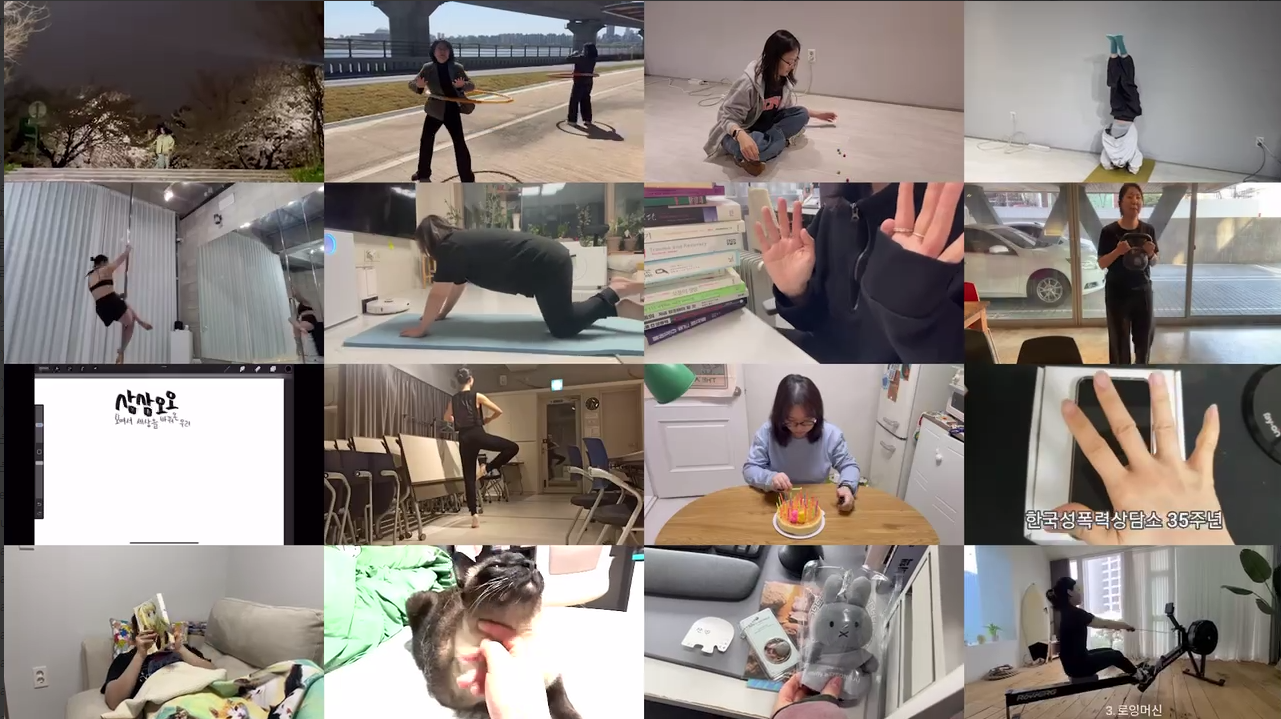 마지막 코너는 좀 감동적이었습니다. 지난해 가을겨울, 상담소에서는 상아/봄눈별 활동가가 강사가 되어 다른 활동가들에게 에세이 글과 영상을 쓰고 나누는 자체 제작수업 (이름하야 영글방)을 진행하였습니다. 그 연장에서 활동가들의 글과 영상을 감상하는 ‘35번의 영글영글’ 시간을 가졌습니다.