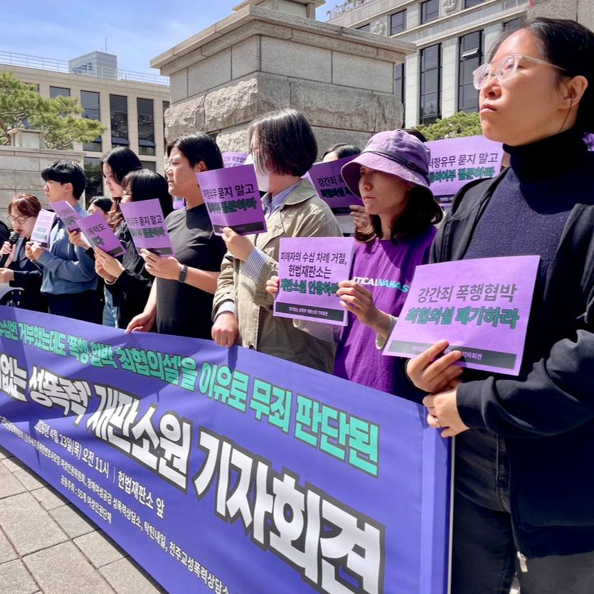 이제 피해자에게 남은 마지막 구제 수단은 재판소원 뿐입니다. 이번 재판소원은 단순히 한 개인의 억울함을 푸는 것을 넘어, 오래된 악습인 법원의 강간죄 판단기준을 헌법 정신에 맞게 재정립하는 계기가 되어야 합니다. 헌법재판소에 간곡히 요청합니다. 국가가 외면한 피해자의 목소리에 응답하여 청구인의 성적 자기결정권과 평등권을 확인하고 회복시켜 주시길 바랍니다.