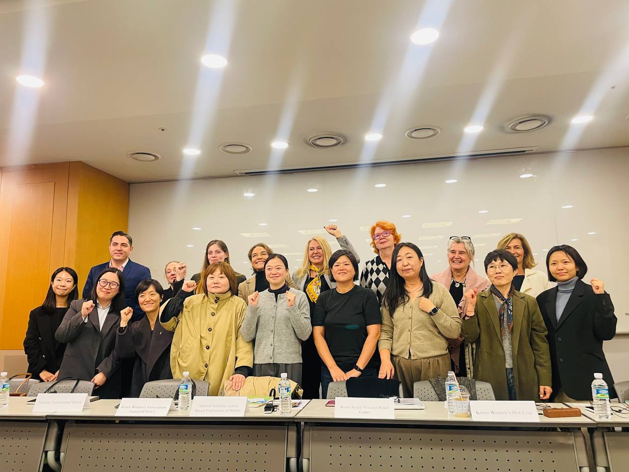 한국 NGO 활동가들은 발표자처럼 세팅된 자리에서 단체 소개와 한국 여성인권 관련 현황을 이야기할 수 있었습니다. 민변 여성인권위원회 전다운 위원장 국제앰네스티 한국지부 장박가람 본부장, 이한나 캠페이너, 한국여성단체연합 양이현경 공동대표, 성매매문제해결을위한전국연대 이하영 상임대표, 한국성폭력상담소 김혜정 소장, 한국여성의전화 송란희 상임대표, 한국여성민우회 최희연 공동대표, 한국사이버성폭력대응센터 김여진 대표가 이야기를 진행했습니다.