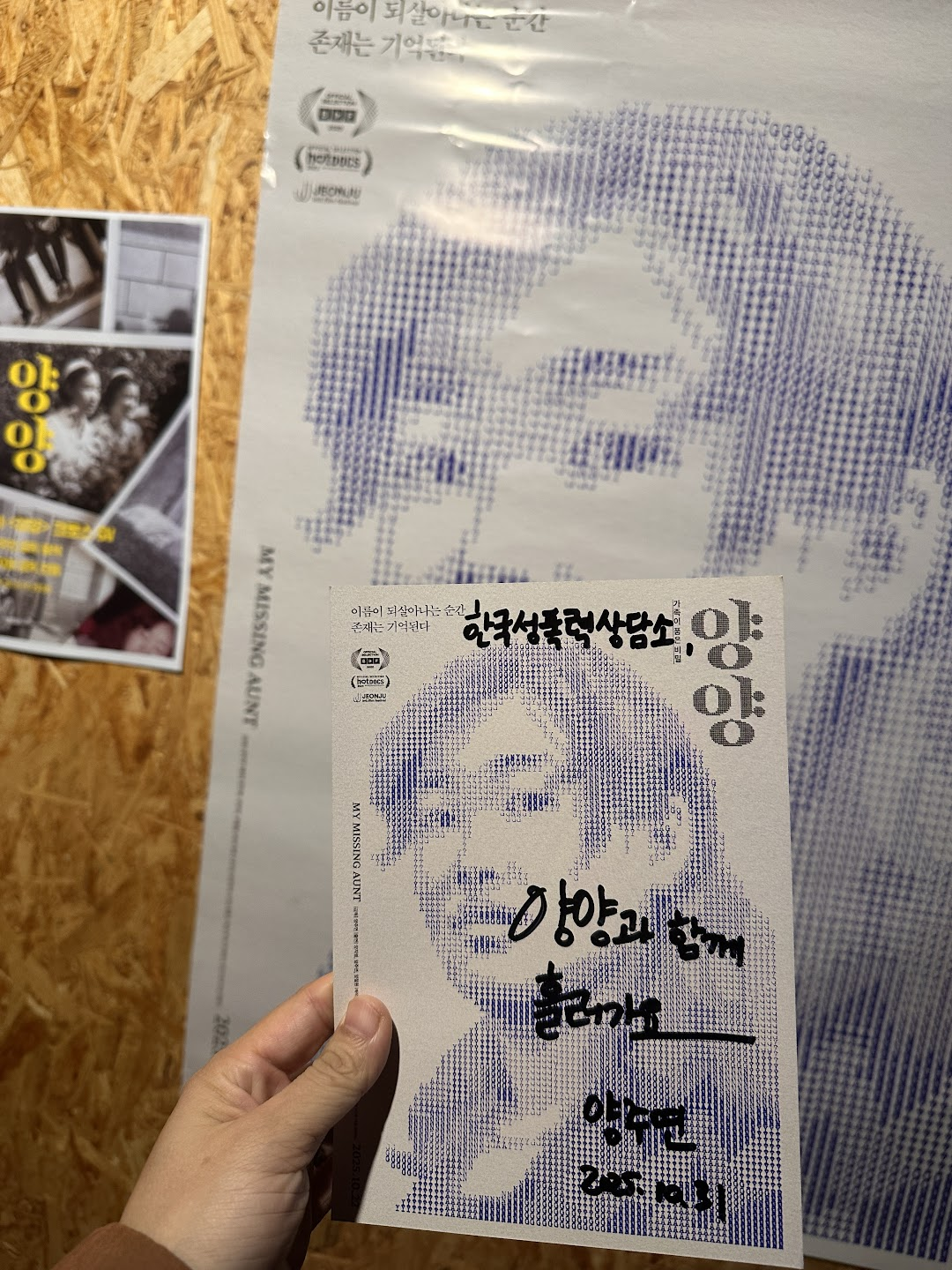 양주연 감독님 직접 사인 (한국성폭력상담소 촬영)