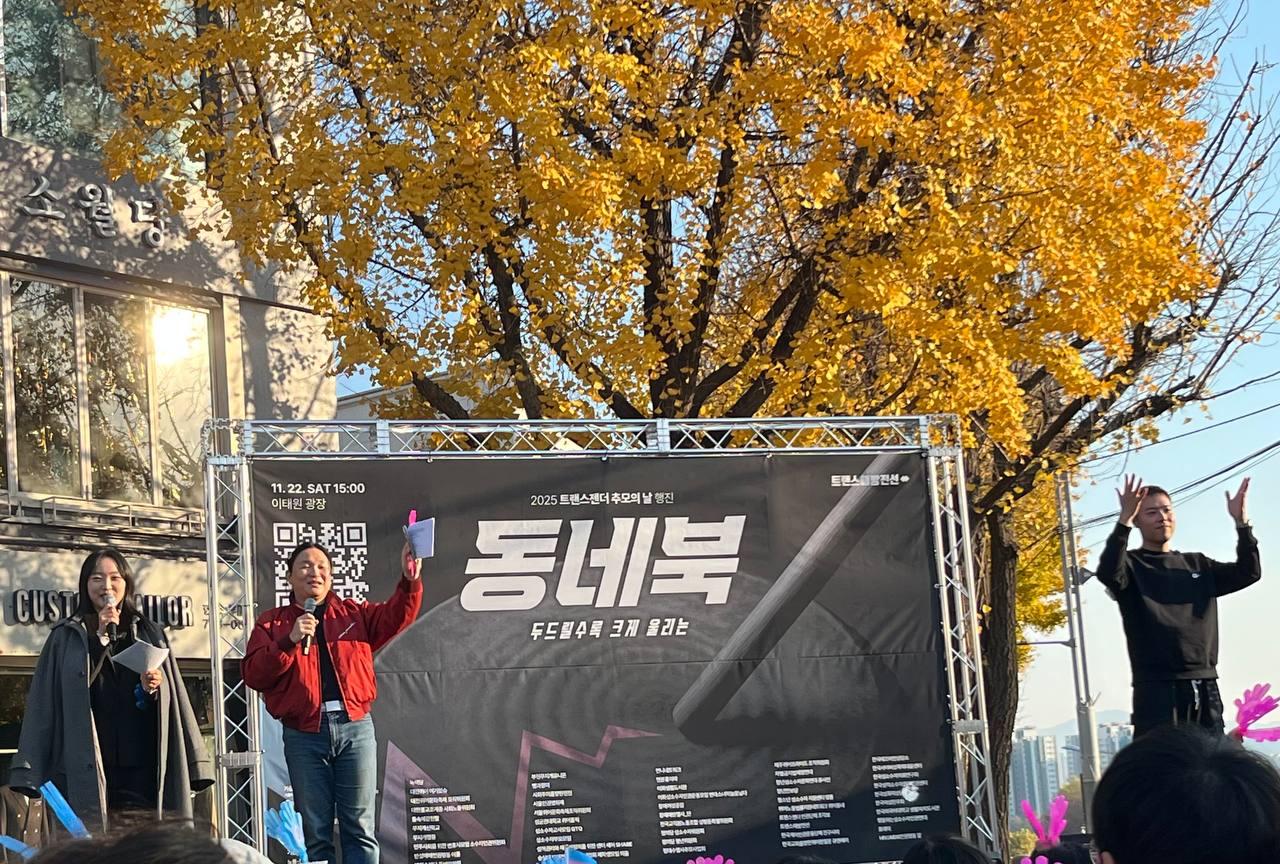 11월 22일, 오후 3시 이태원 광장에서 🏳️⚧제8회 2025 트랜스젠더 추모의 날 집회 및 행진〈동네북, 두드릴수록 크게 울리는>이 진행되고 있다.