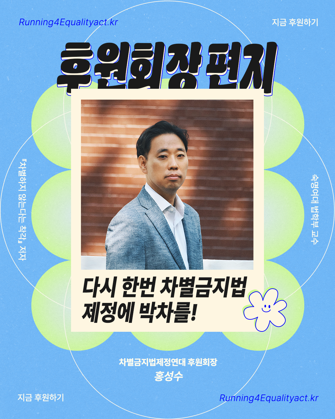 ✉️ [후원회장 편지] 다시 한번 차별금지법 제정에 박차를!