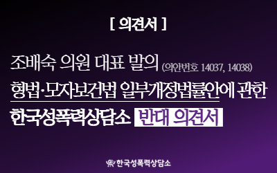 조배숙 의원 대표 발의 형법· 모자보건법 일부개정법률안 ( 의안번호 14037, 1403 8) 에 관한 한국성폭력상담소 의견서 제출일 : 2025.11.19 ...- 2025-11-19