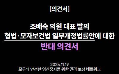 조배숙 의원 대표발의 형법 일부개정법률안(의안번호 14037)에 관한 반대 의견서 제출 단체: 모두의 안전한 임신중지를 위한 권리 보장 네트워크 (건강권실현을위한보건의료단체연합(건...- 2025-11-19