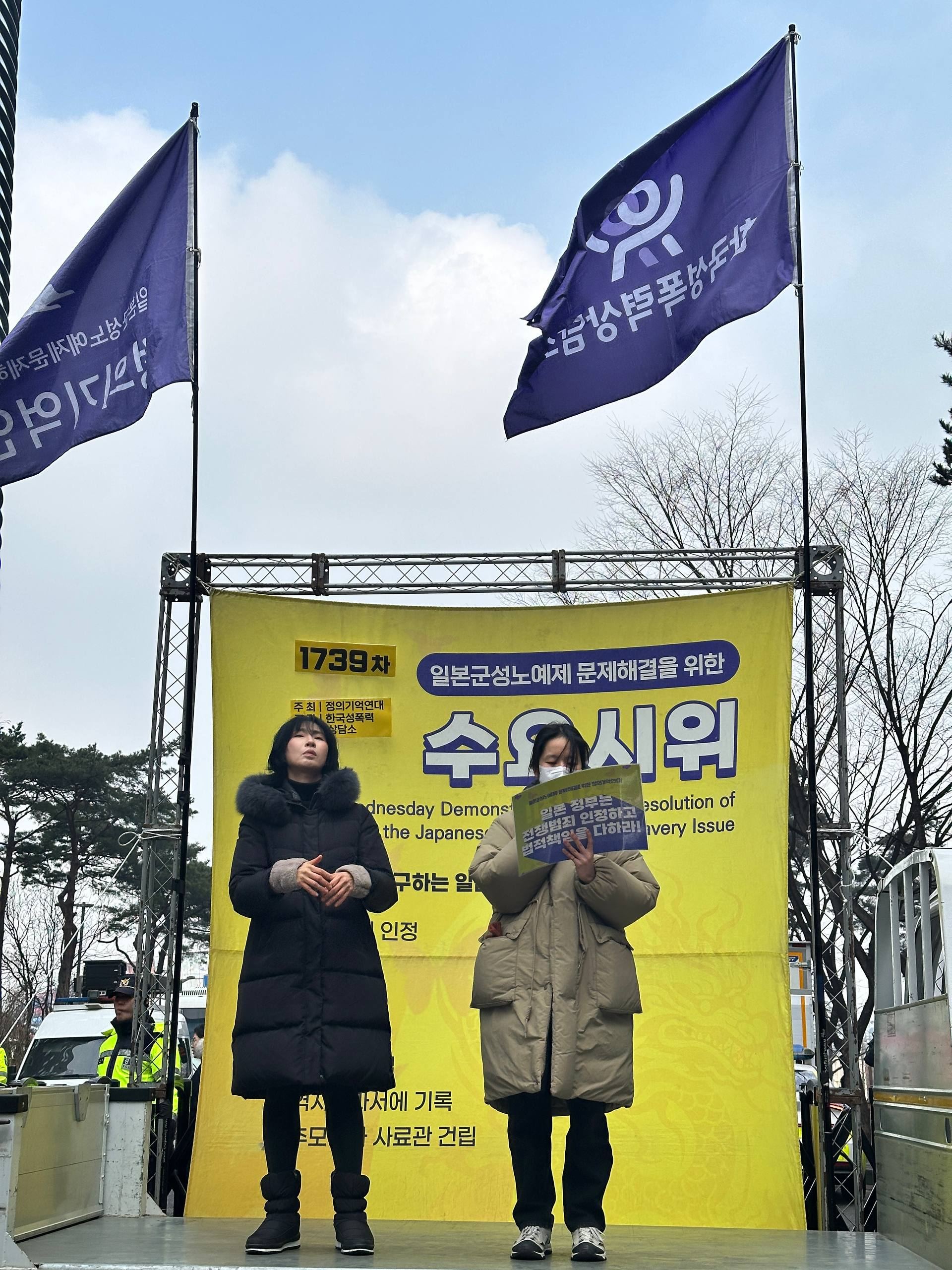 지난 11일 수요일. 제1739차 일본군 성노예제 문제해결을 위한 정기 수요시위는 한국성폭력상담소의 주관으로 진행되었습니다. 오랜 시간 연대해 온 자리였고, 이번 수요시위는 여러모로 더욱 의미 깊게 느껴졌습니다.