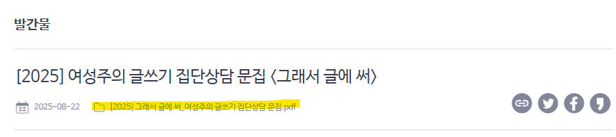 2025년 4월부터 6월, 여성주의 글쓰기 집단상담 <그래서 글에 써>를 진행했습니다. 성폭력 생존자들과 프로그램 진행자인 은유 작가님은 총 10주간 치유·회복을 위한 여정에 함께했습니다.