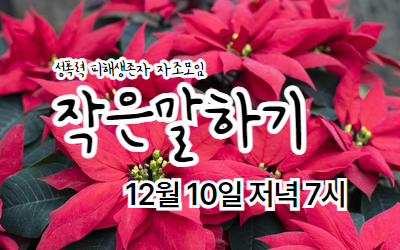 🎄🤶 2025년 12월 작은말하기 송년회가 열립니다. 일시: 2025년 12월 10일 수요일 오후 7시 장소: 신청자에게 별도로 공지합니다. - 송년회는 기존 참여자로만 진행됩...- 2025-11-28