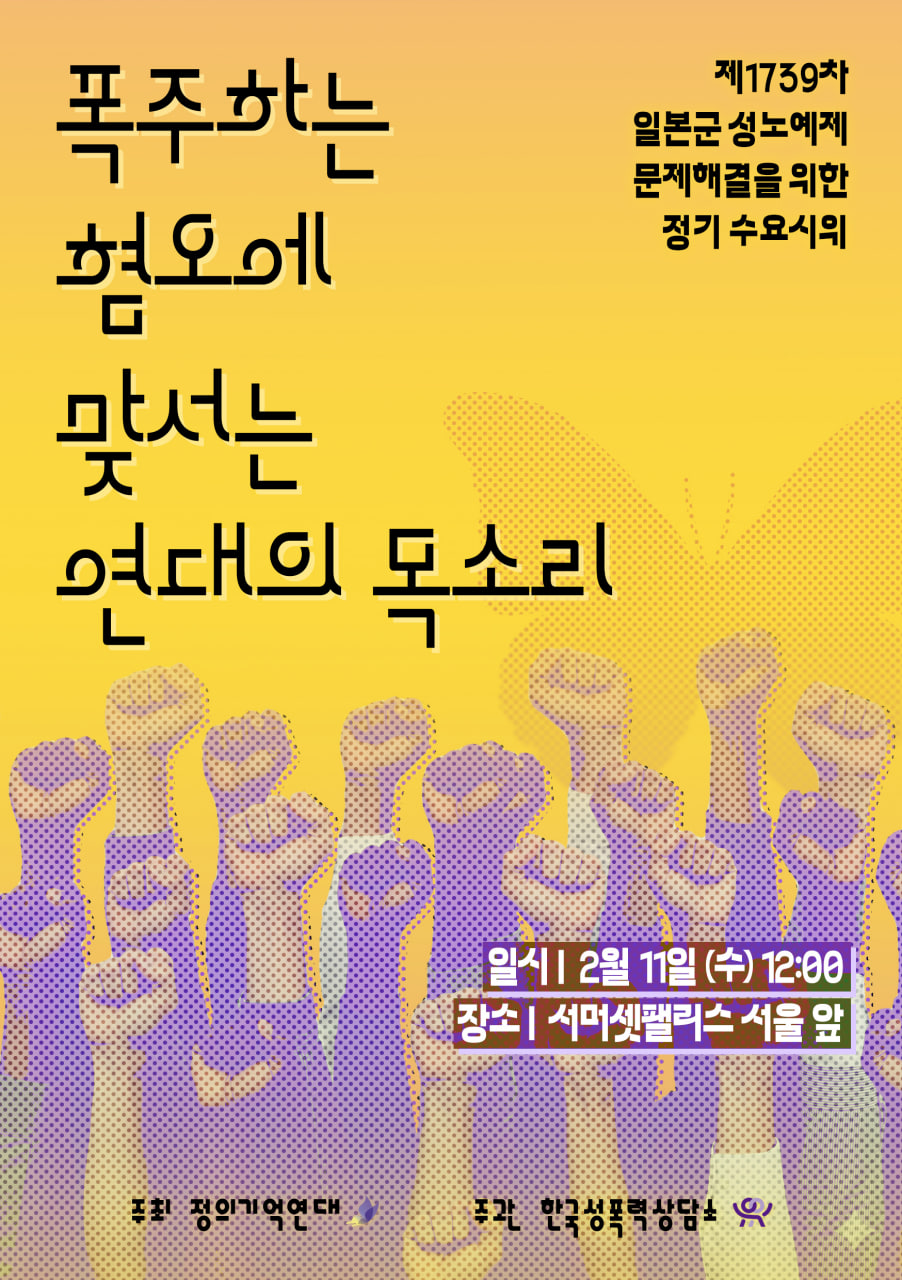 최근까지도 평화의 소녀상을 향한 테러 일어나고, 수요시위를 방해하는 반대시위가 열리고 있습니다. 특히 반대시위에서는 피해자를 조롱하거나 전시 성폭력의 역사를 폄하하는 메시지를 담은...- 2026-02-02