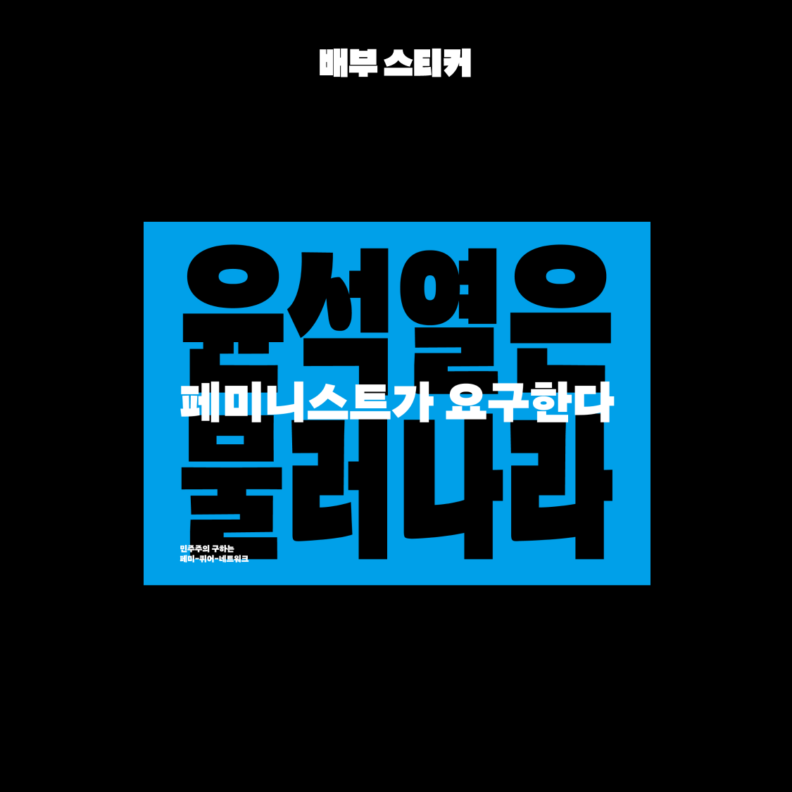 (검정색 배경에 ‘페미니스트가 요구한다, 윤석열은 물러나라’라고 적힌 스티커 이미지가 있다)