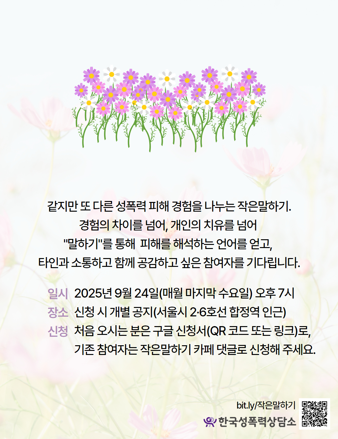 [참여안내] 2025년 9월 작은말하기(성폭력생존자자조모임)