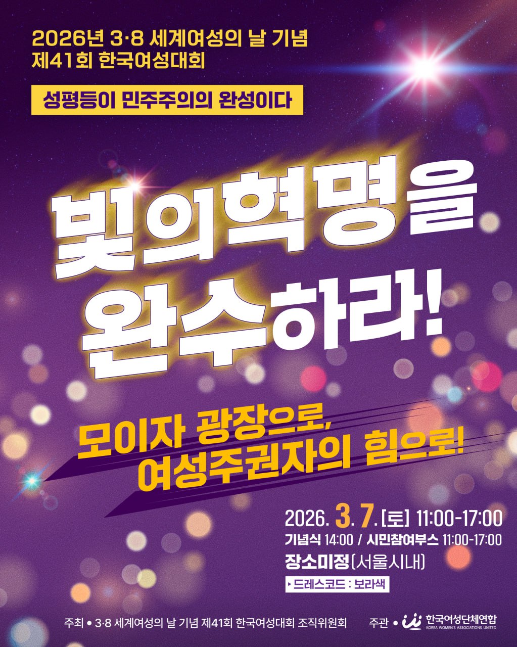 #38세계여성의날 #38여성대회 #한국여성대회 #빛의혁명을완수하라 #성평등이민주주의의완성이다 #모이자광장으로 #여성주권자의힘으로 #제41회한국여성대회 #한국여성단체연합 #성평등 #민주주의 #성평등실현 #성차별철폐 #MoveForward #MoveForwardKorea #InternationalWomensday2026