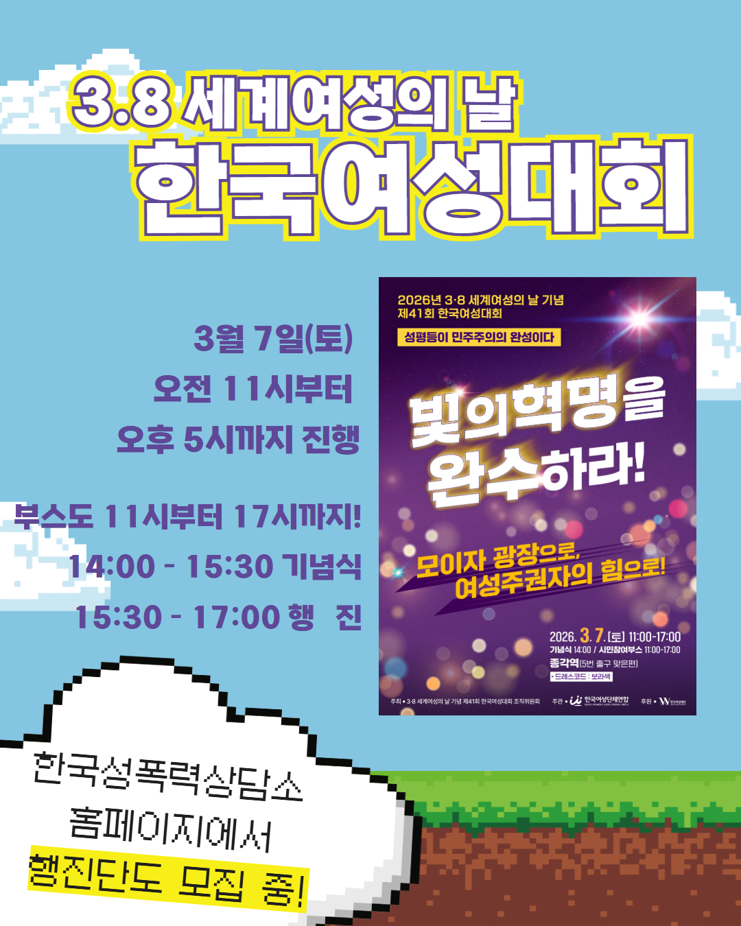 *한국성폭력상담소 홈페이지에서 3.8 한국여성대회 행진단도 절찬리 모집 중!!