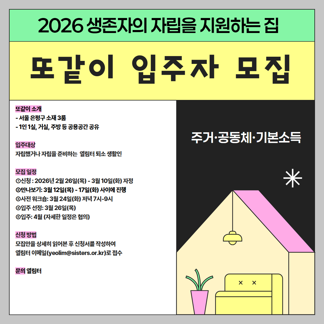 2026 생존자의 자립을 지원하는 집 <또같이> 입주자 모집