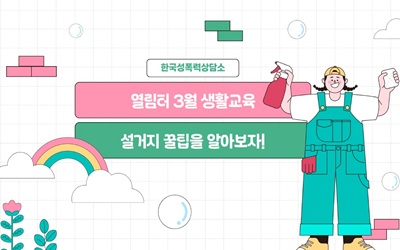 3월의 생활교육 주제는 "설거지 꿀팁"이었어요. 열림터에서는 각자 자신의 설거지를 하고, 공동으로 사용된 주방기구 설거지와 주변 정리는 그날의 저녁 당번이 합니다. 음식쓰레기를 버리고, 가스렌지 주변을 닦는 등의 청소는 일주일에 두 번, 전체 청소 시간에 주방을 담당한 사람이 하고요.